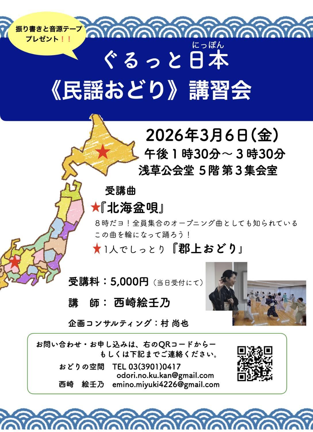 と題して、日本全国を民謡おどりで巡ってみよう!!
